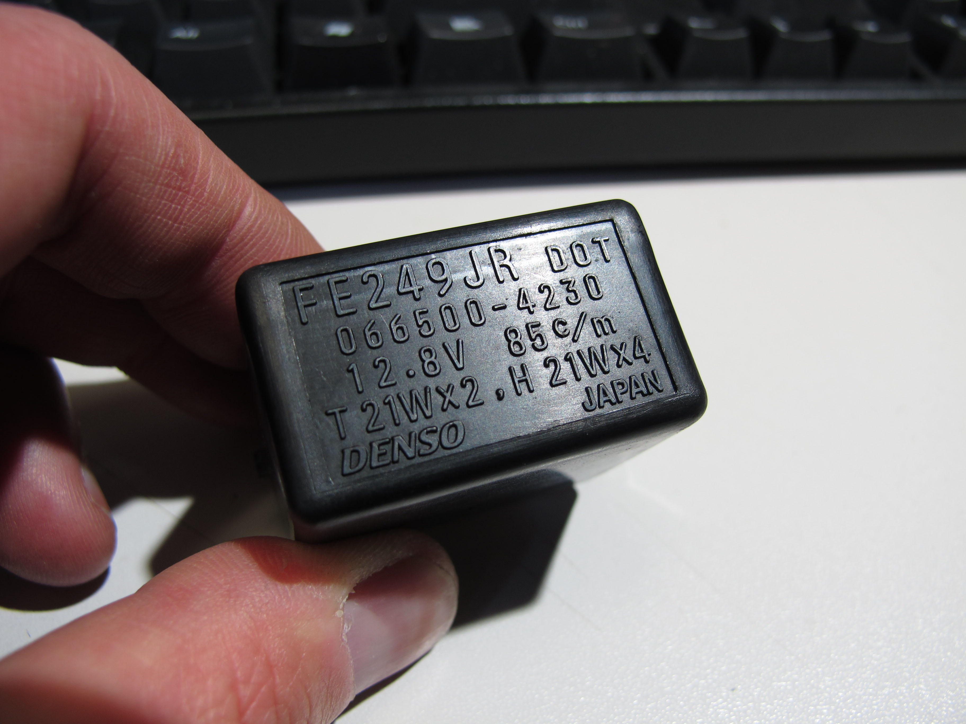 DENSOのカスタムICが入っていた。 きっと555では無いと思う。 負荷容量で点滅サイクル変わるのはワザと?