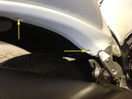 ここまでネジを外すと、リアカウルを少々たわませて広げて後ろにずらすことができる。