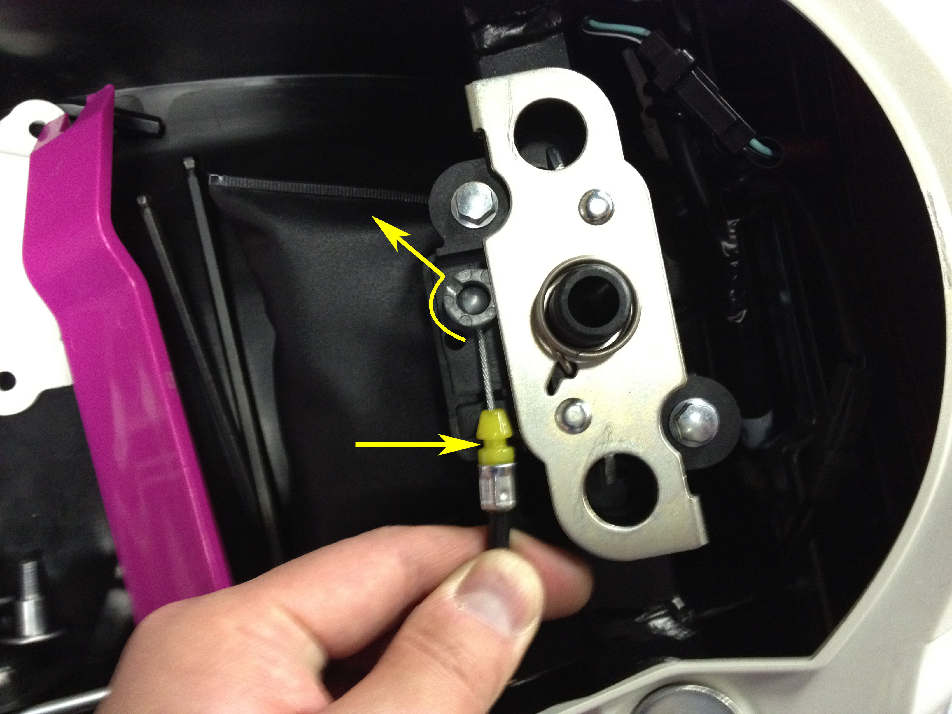 リアカウルをちょっとずらしておいて作業する場合は不要だが、全部取り去る場合はキーワイヤーも取り外す。