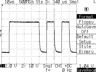 バス信号を直接覗いてみると、最小パルス幅は 100KHzだった。 ボーレートは 100KHzということになる。