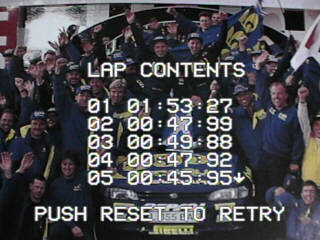 ぐるっと廻ってきてスタートラインを通過し、赤外線を検出すると、計測が開始され、画面には、"LAP 01"が表示されます。