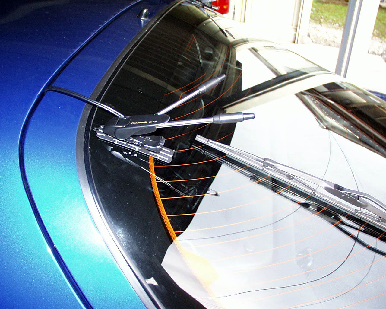 TVアンテナは後部ガラスの上の方、GPSアンテナは屋根の後方中央に配置、ビーコンアンテナはダッシュボード中央に配置した。