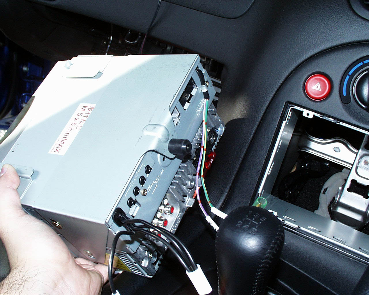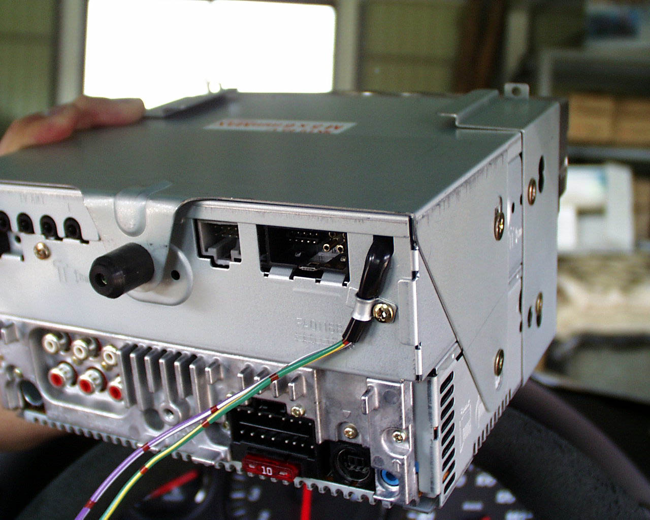 加工した写真を撮り忘れてしまった。(爆) カーステの後ろ側に付けるコネクタのついた変換ハーネスであるが、余った配線を束ねておくスペースが無いので、できるだけ短く切り、半田付け接続、熱収縮チューブにて絶縁する。 カーステのコネクタに付いているヒューズなどは取ってしまうくらい省スペースにしないと、コンソールの中にカーステが収納できない。