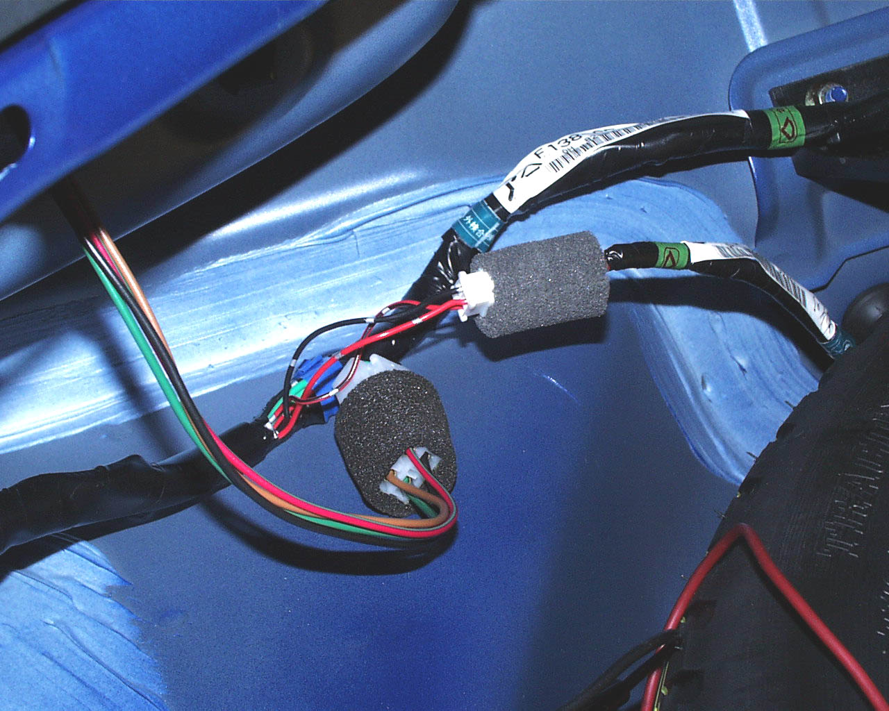 車速信号は、発煙筒ホルダーの裏側にあるECUから取り出す。 マツダの電気配線図には車速信号がどれだか記載されていないが、下記の線が車速信号線である。