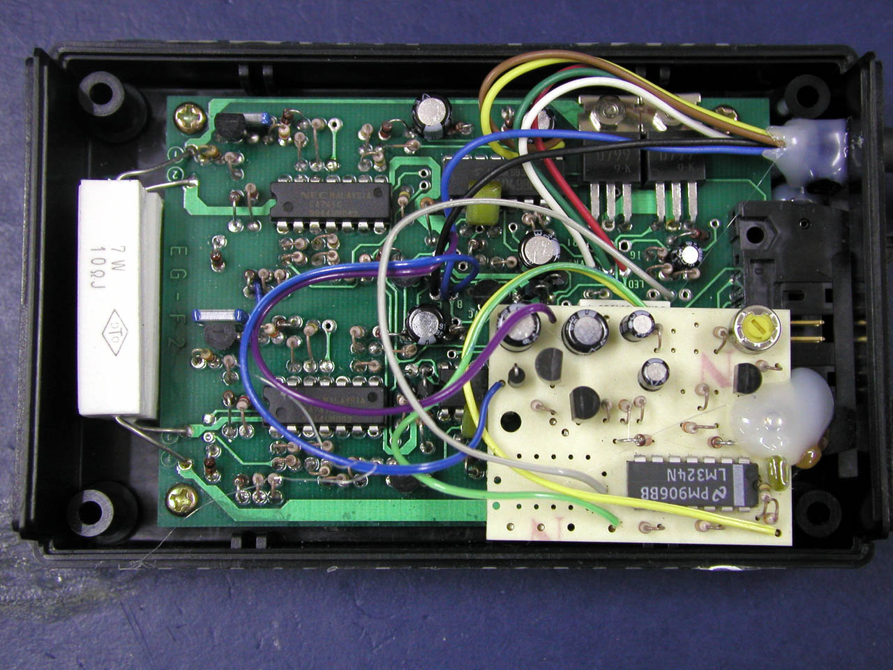 でも、ECU内にパターンカットをしてまでアナログ基板を内蔵するのは、イマイチである。 純正ECUがもったいない。 ECUのハーネスをカットしてユニットを1にまとめた方がよっぽどスマートでかっちょいい。
