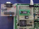 ![]() 通信のテスト中。 ちなみに、写真中のフラッシュROM AT49F1024は、BDM経由で10秒ほどで書き換えができる。 |