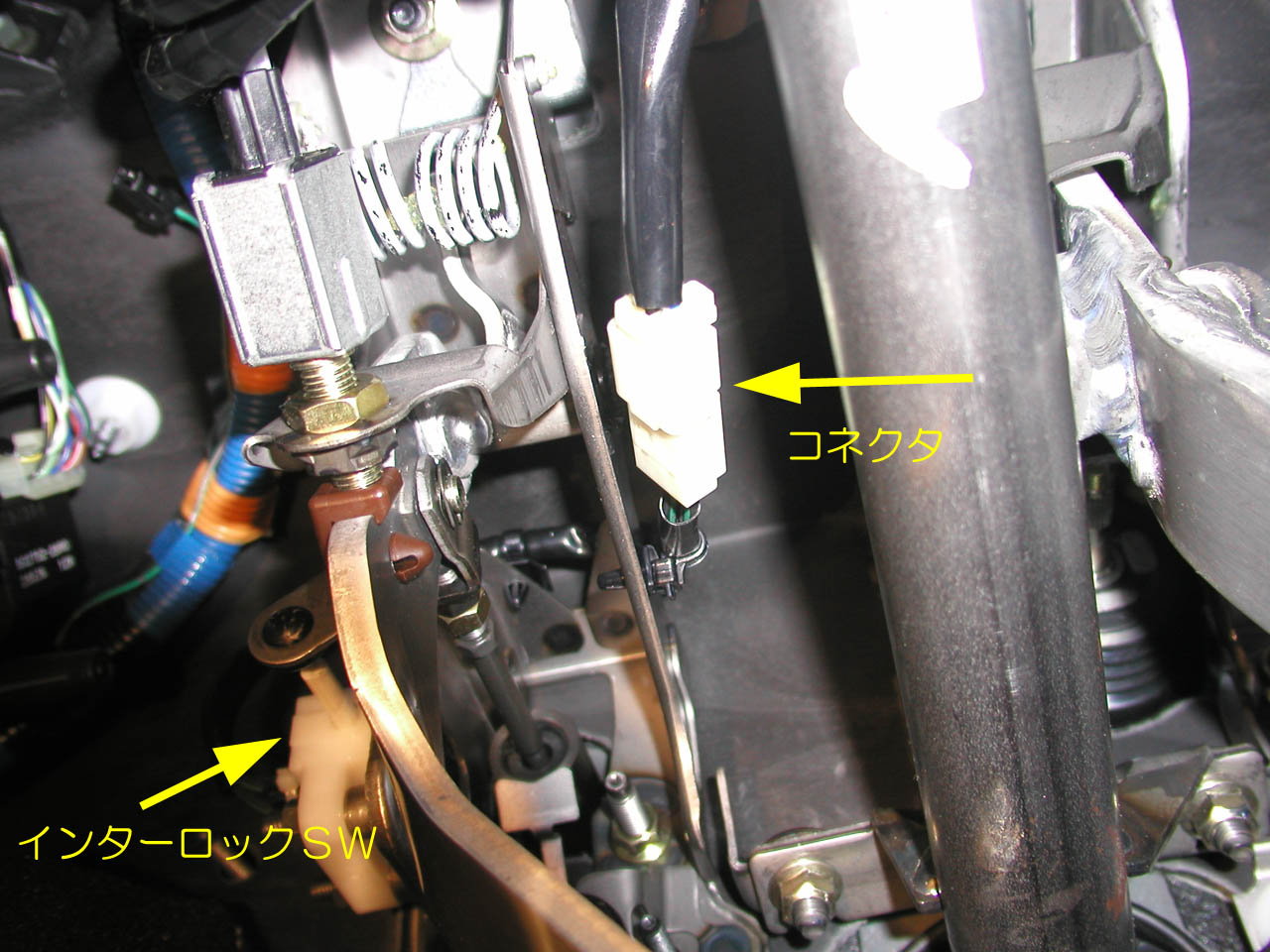 クラッチの根元にスターターリレーを切断するスイッチが付いている。