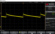 多少リプル(2.4V-pp)は出ているがスパイクノイズは皆無だ。 スパイクノイズがあると、取り付ける電子機器の電源回路の出来が良くないと誤作動級でノイズの影響が出てくる可能性があるが、この程度なら安心して使用可能だ。 |