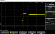 リレー端子の波形は長い電源配線がコイルの役割りをしてノイズは多少抑制されるが、それでも 18V-pp程の瞬断ノイズになる。この瞬断ノイズで ICリレーが誤作動するという訳だ。 |