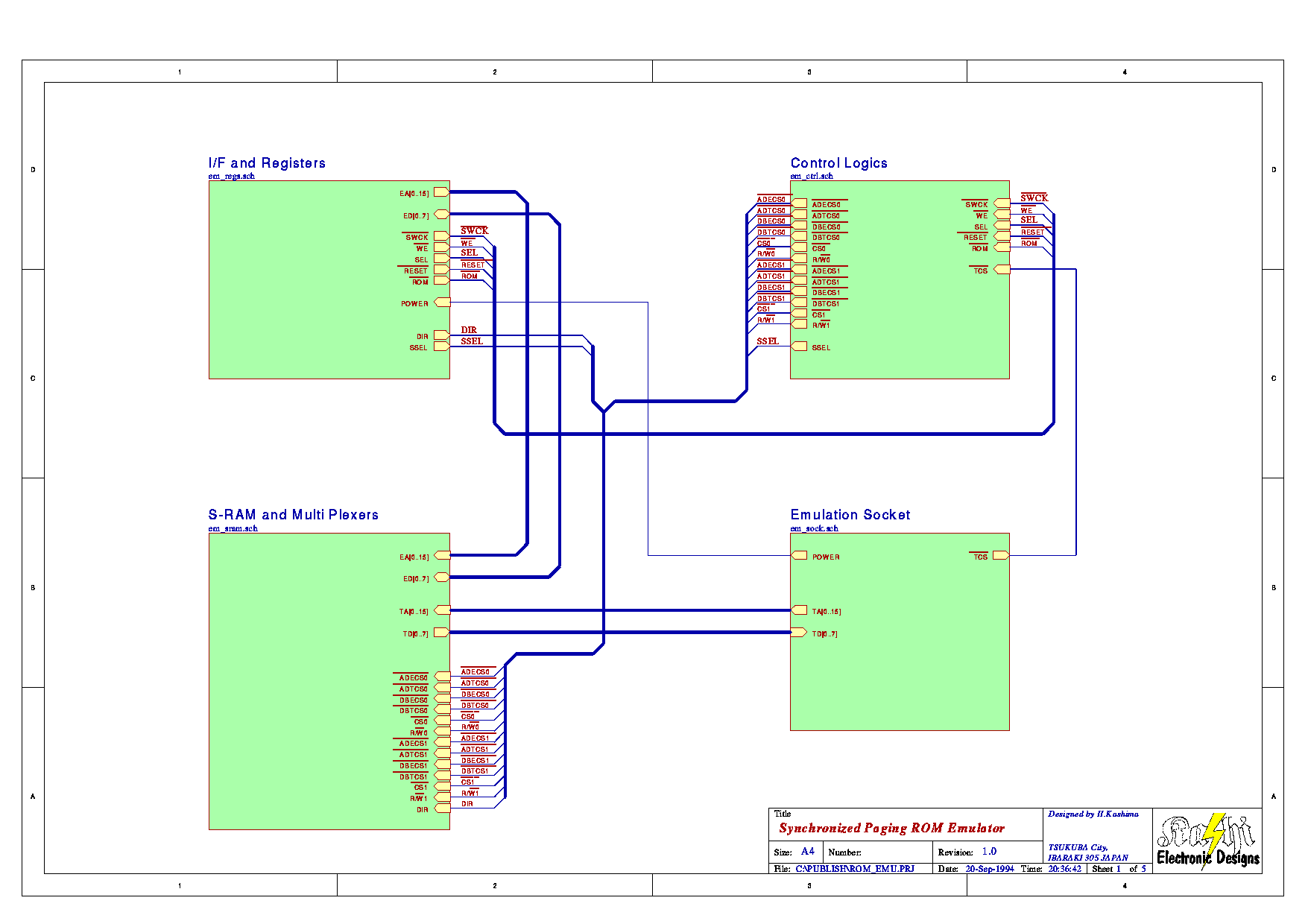切換え関連のデバイスは遅廷を抑えるため 74AC(T)タイプを使用し、S-RAMも高速タ イプ(80ns) を使用した。 バスバッファなどの遅廷も含めて大体 120nsの ROMに相当 するスピードを得られる。