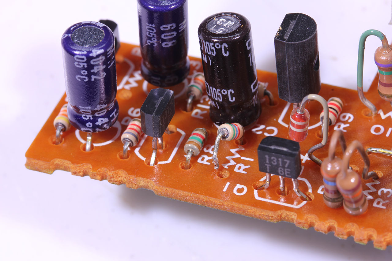 回路を解析してみると、FDの場合は、基板の電流検出回路を無効化すればハイフラを防止できることが判った。 改造方法は簡単。 抵抗 R1の足を浮かせば良い。 元に戻す必要がなければ足をニッパでカットしてもOK。