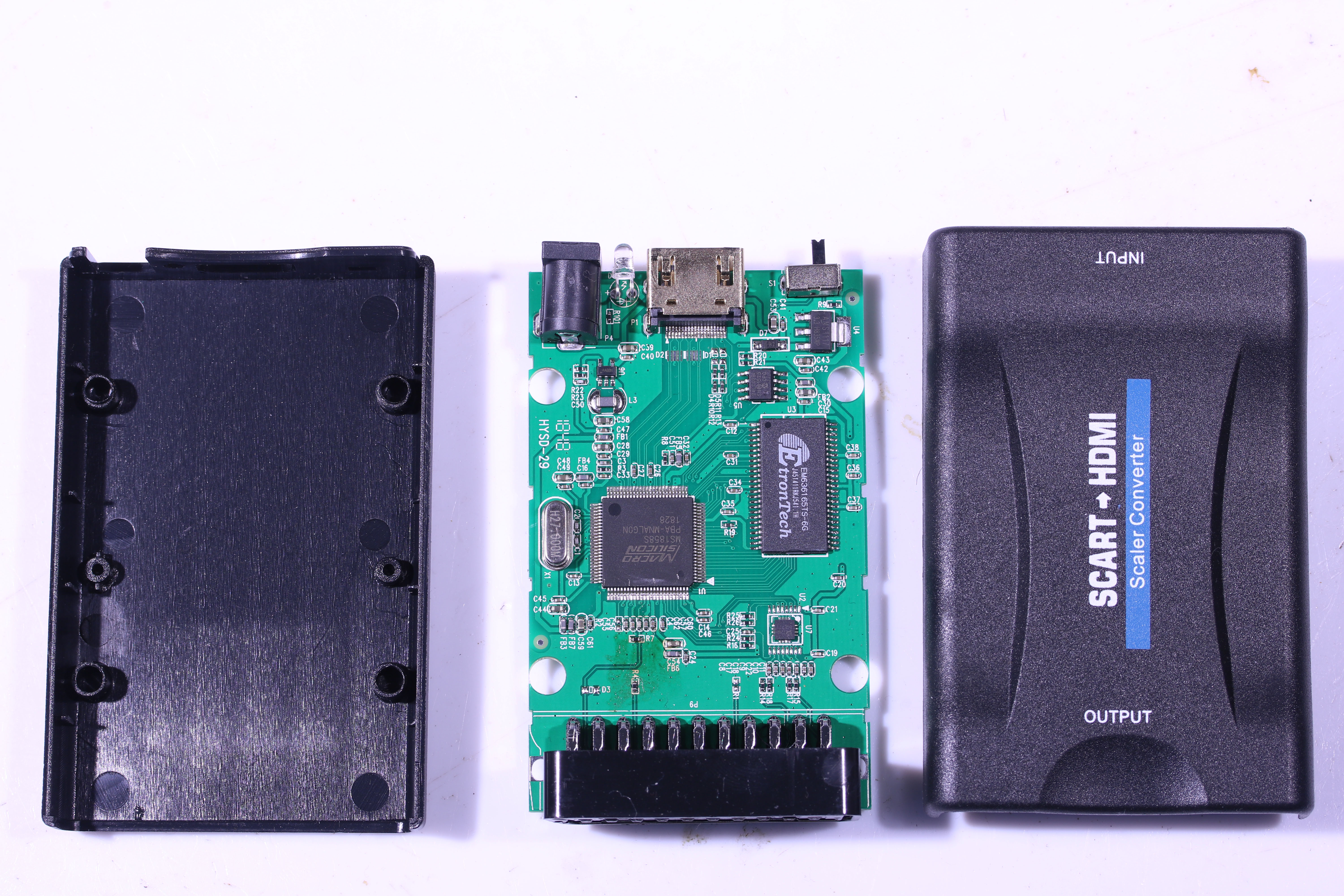 ・SCART→HDMI Converter 966円3,000円くらいで売っているモデルもあるが、その1/3の値段の安いモデルの方。何が違うのかと言うと、SCART端子の Composite Video信号が変換される。中身はいわゆる NTSC→HDMI変換ということ。変換チップは MacroSilicon MS1858S