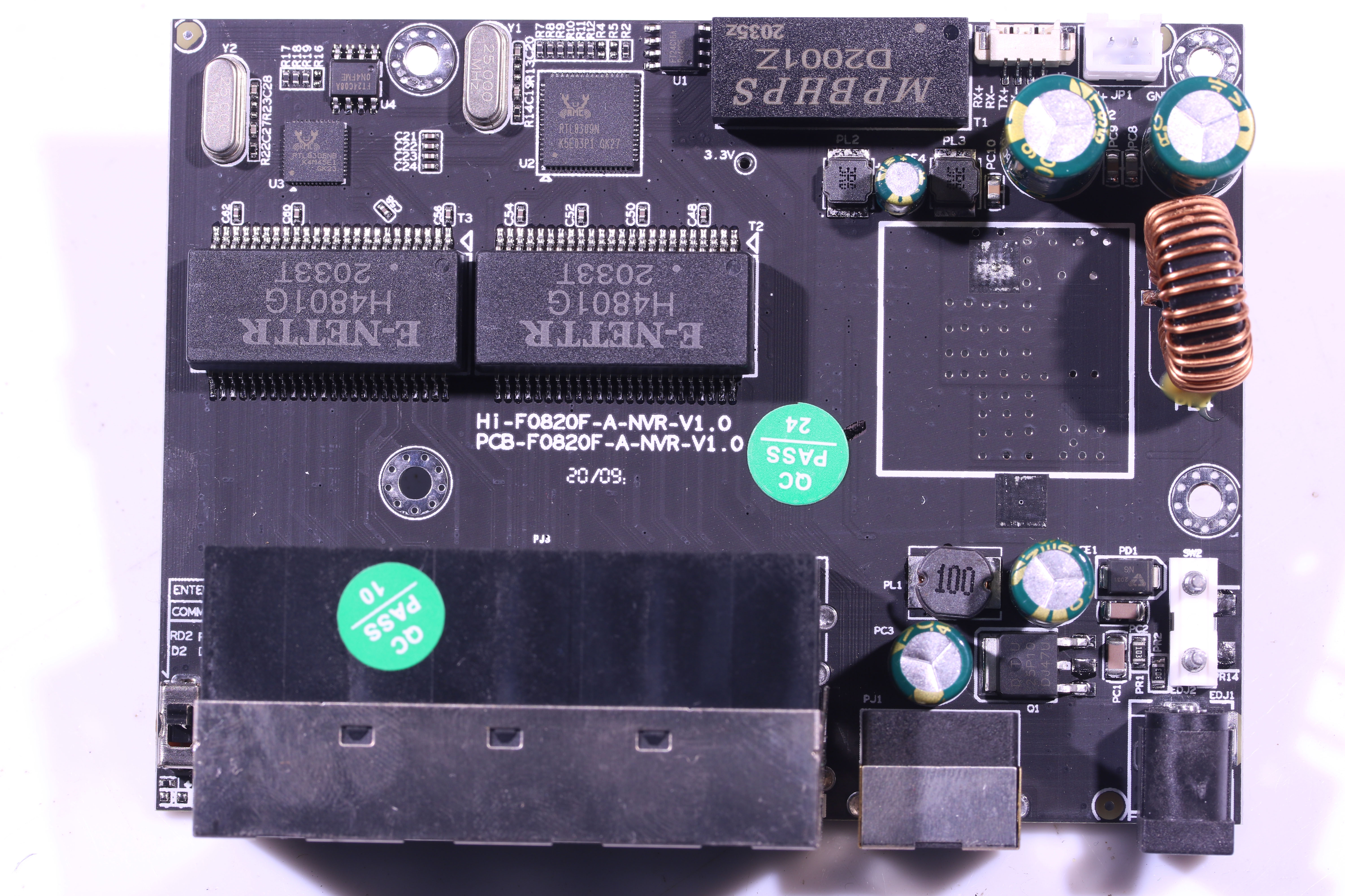 PoE電源の基板は、要は100M 6+8ポートのHUBになってて本体基板とはethernet信号で