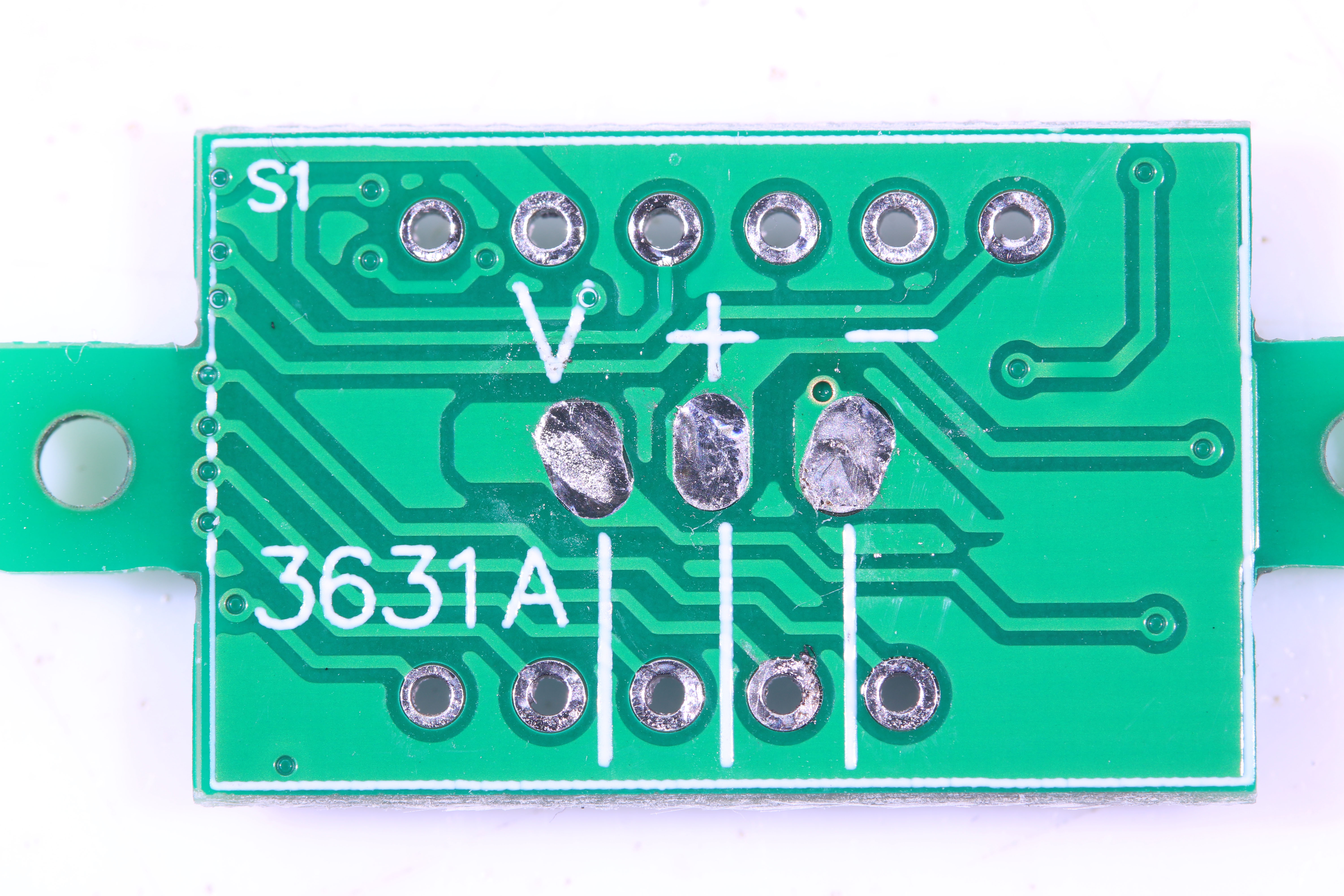 分圧後の電圧と表示は手元の個体では 3.25v入力で 39.9表示で 0.1単位あたり 8mV程度。