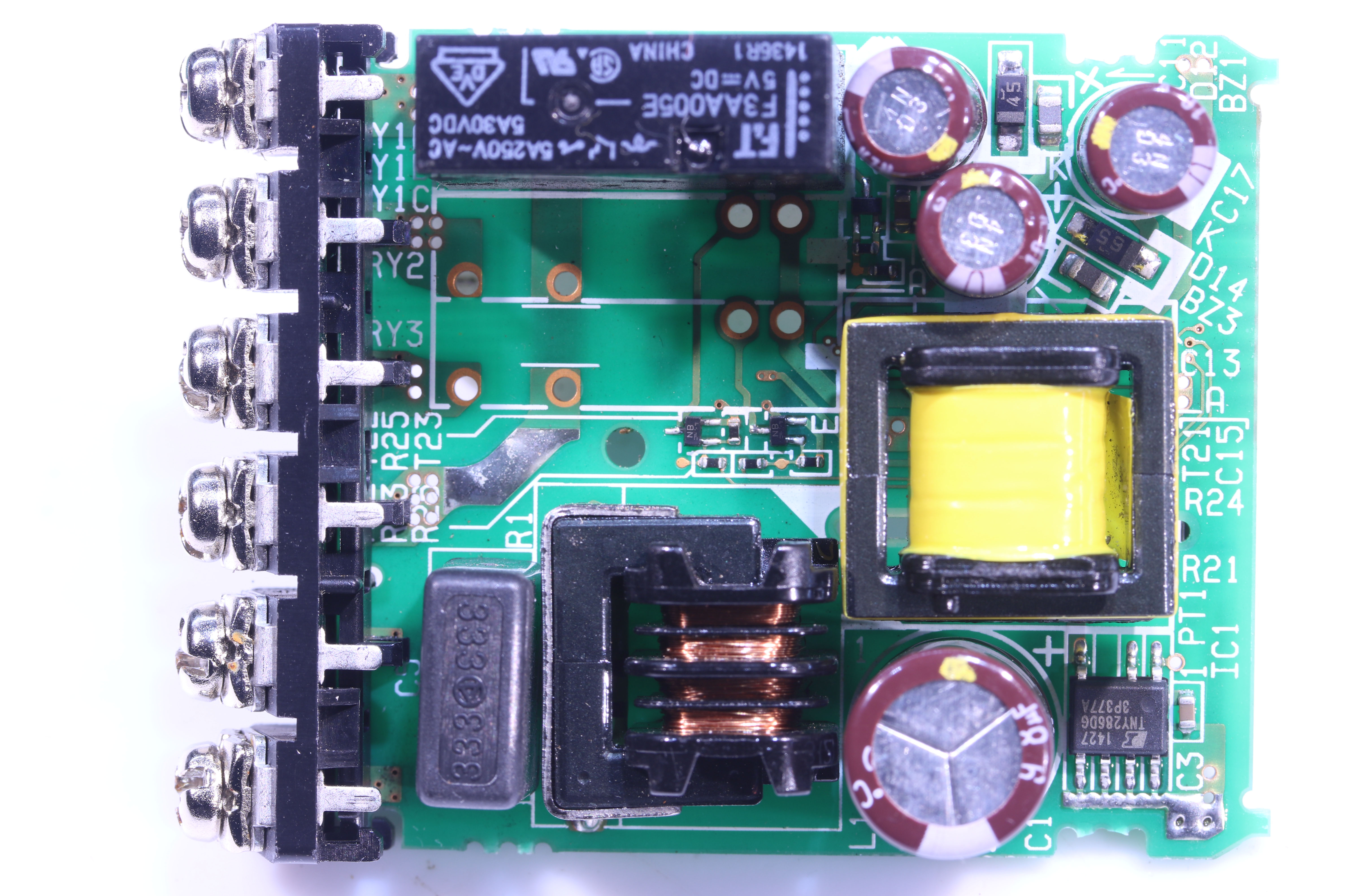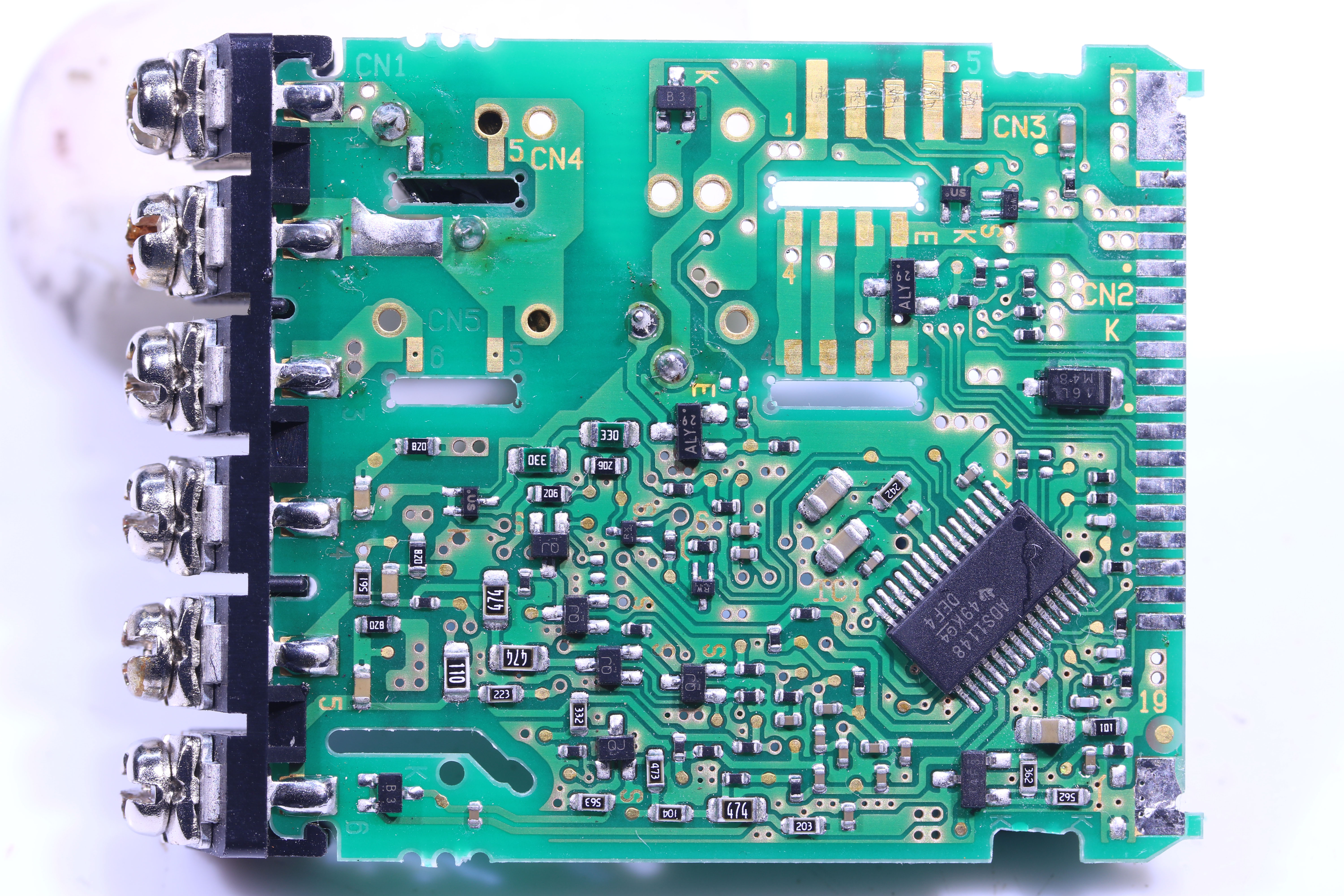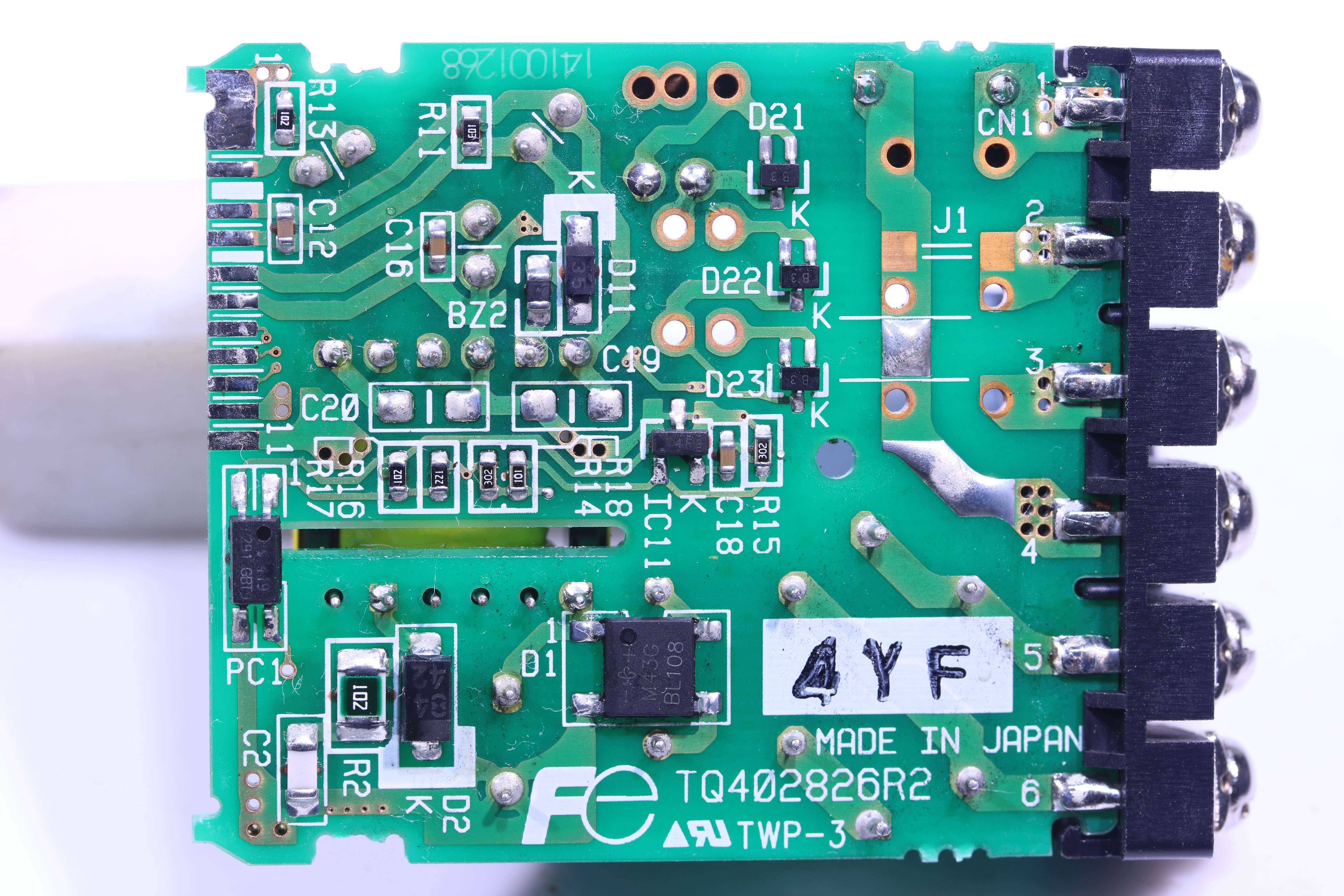 ・富士電機 PXF 温度調節器 PXF4AAY1-1YY00先日の PXF9と出力ポート数が少ない以外はほぼ同じ回路のようだ。通信ポートのフロントエンドが特殊なので、PXF9の時はTxD/RxDをこっそり直接後部端子につなげて外に出したが、このモデルは低圧側に余剰端子が無いのでプチ改造は不可。