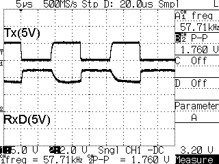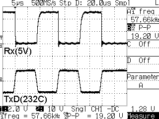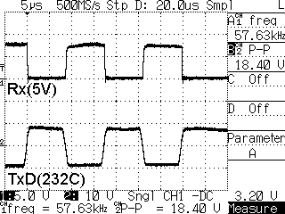 しかも、こともあろうか、RTS信号オンの状態で使用すると、TTL(?)電圧側