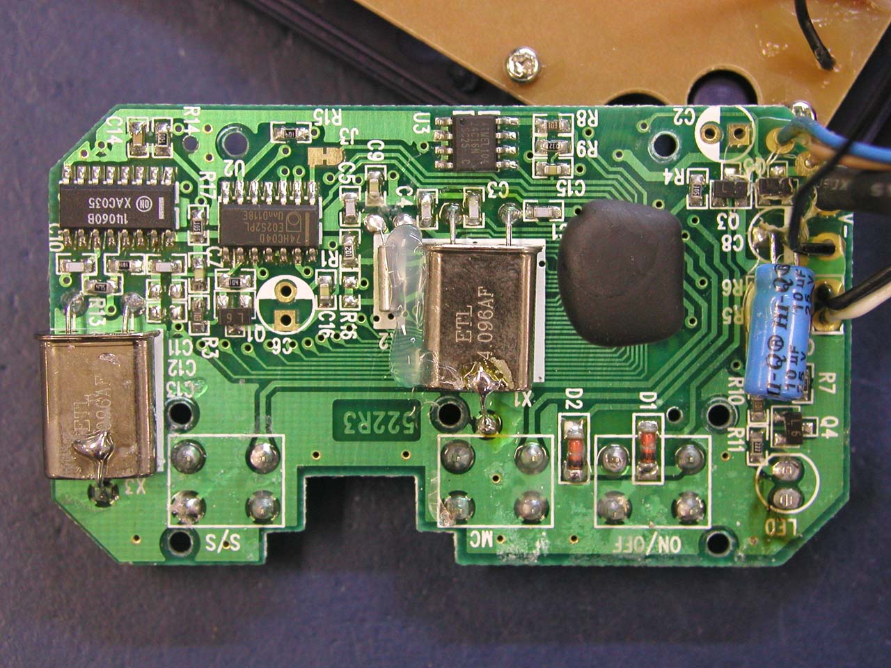 ・ラップタイマー PLAPⅡ ネジの丸みや基板の光沢からして中国あたりで作っているものみたいである。 タイマー本体はどうでも良くって、問題はセンサーの構造・回路なのであるが、センサーは半導体ホール素子が使われていて、差動アンプ→コンパレータという簡単な回路構成であった。磁気検出感度は、棒磁石(8φアルニコ)で 5cm程の感度である。同じ距離でセンスする検出ユニットを作れば、サーキットでも同じく検出できると思う。