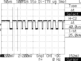これはETCの通信端子の波形。 差動信号でPWMなインターフェースらしい。