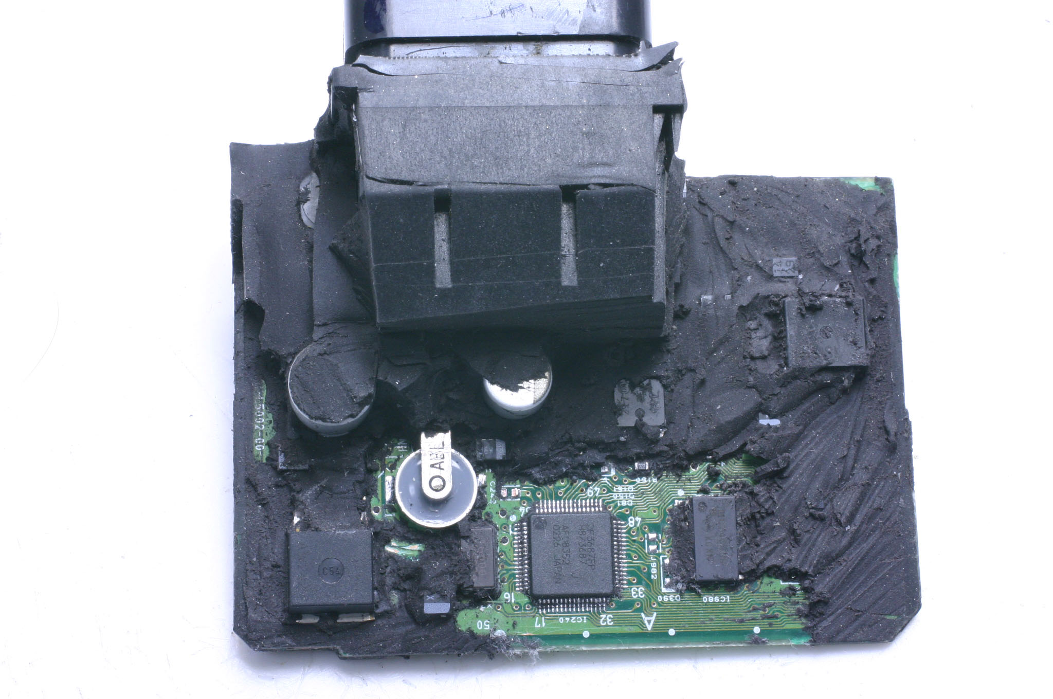 スズキ スカイウェーブ250のECUCPUは H8/3687(16MHz)だった。裏側のテスト端子からブートモードで書き込みできるようになっているみたいだ。ユニットがゴム封止してあって、基板を取り出すのに一苦労である。フライス盤で筐体を削って、ゴムをカッターでしこしこ削ってった。こりゃ書き換えるより作り直した方がスマートだな。