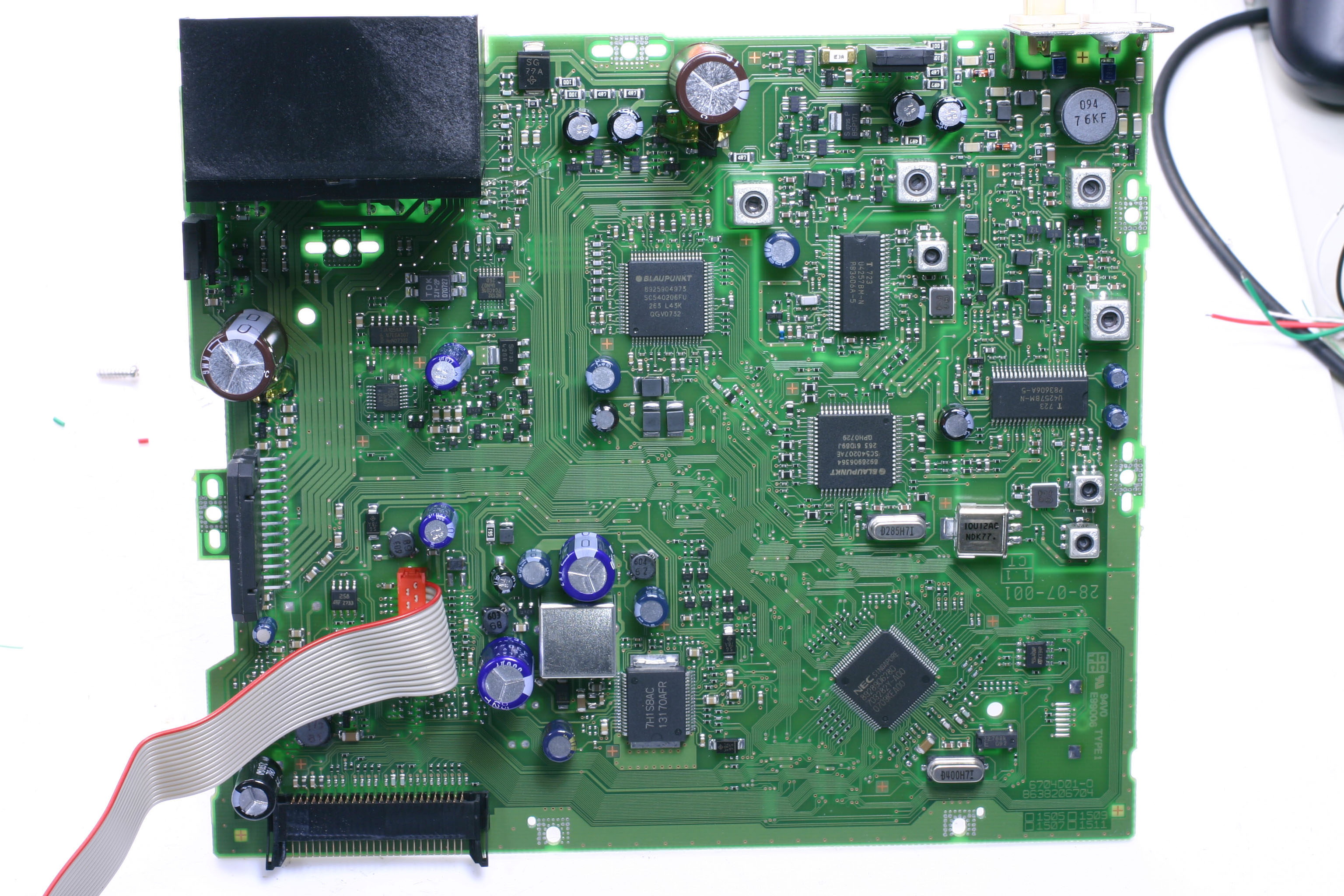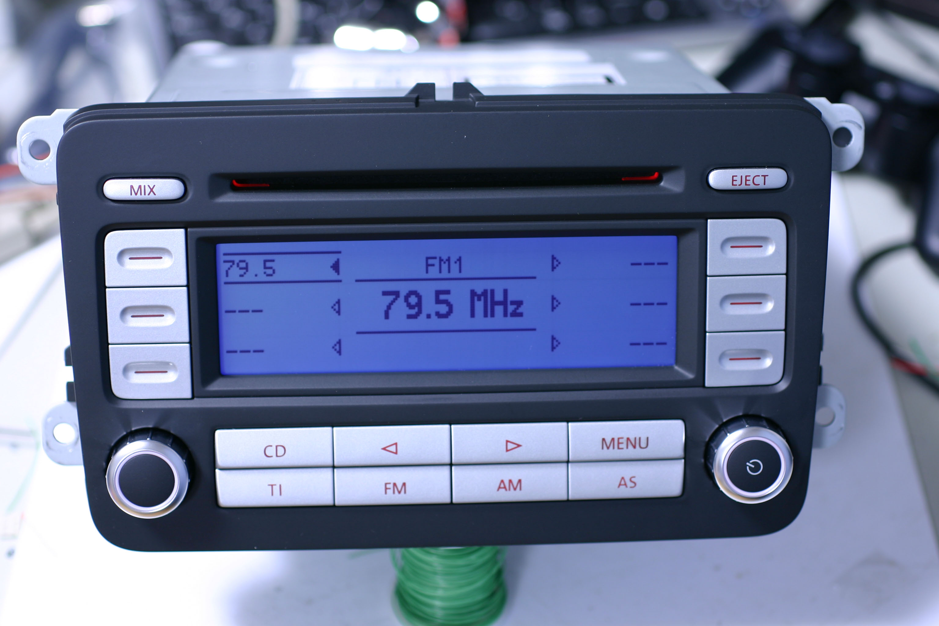 VW純正カーステRCD300CANバス入力が付いていて、キー情報やらステアリングコントローラーやらの情報をやりとりするようになっている。 後部にCDチェンジャーの拡張端子があって、ここにiPodを接続するアダプタも売っている。