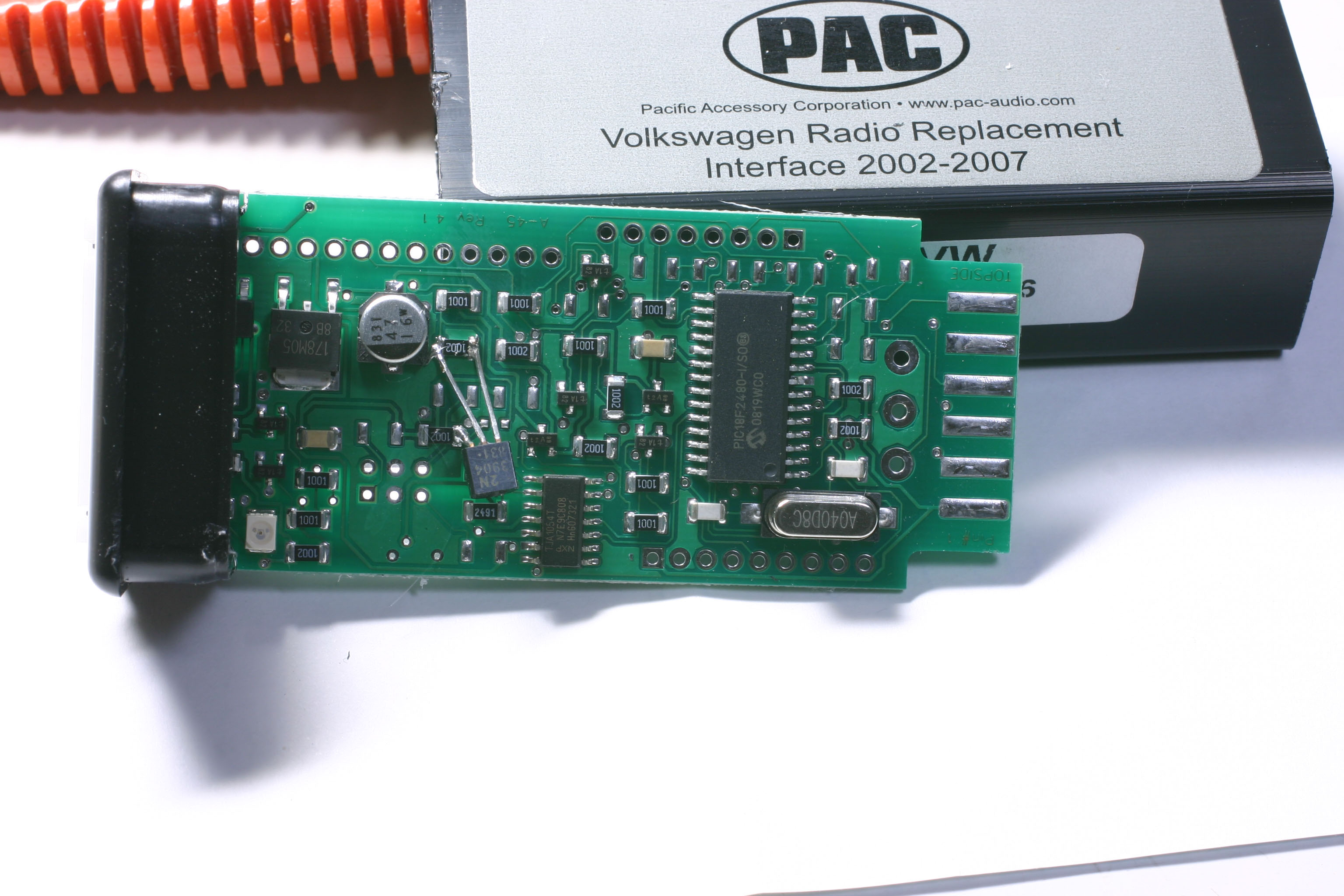 ・PAC C2R-VW GOLF MK5用CANアダプタラジオ裏のCANバスから、イルミ、車速、後退、サイドブレーキ、ACC電源を生成するアダプタだ。 CAN付きのPICが入ってるだけ。