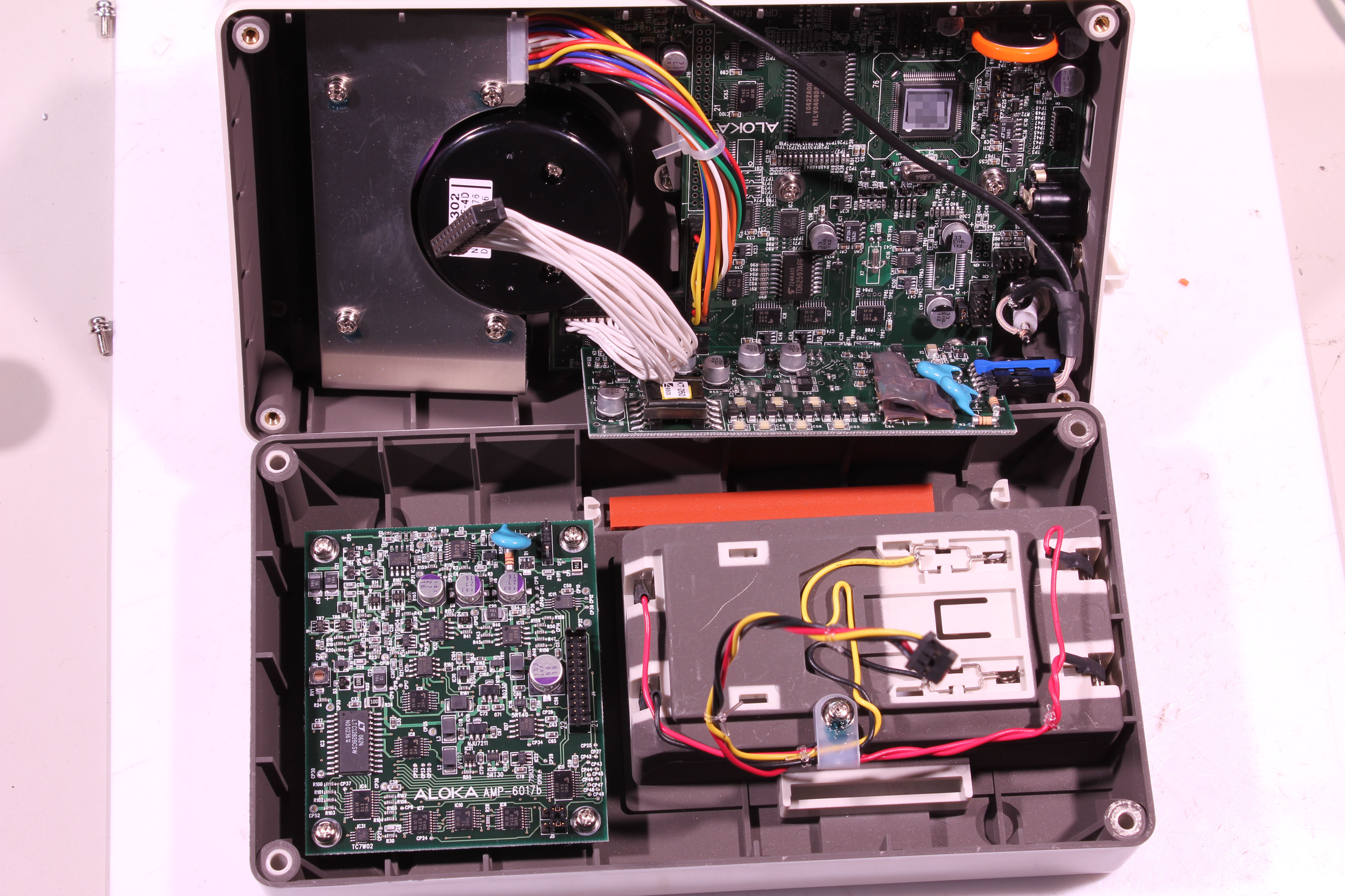 光電子倍増管で検出という仕組みだ。 銀色の棒は分解すると良くない事が起こりそうなので