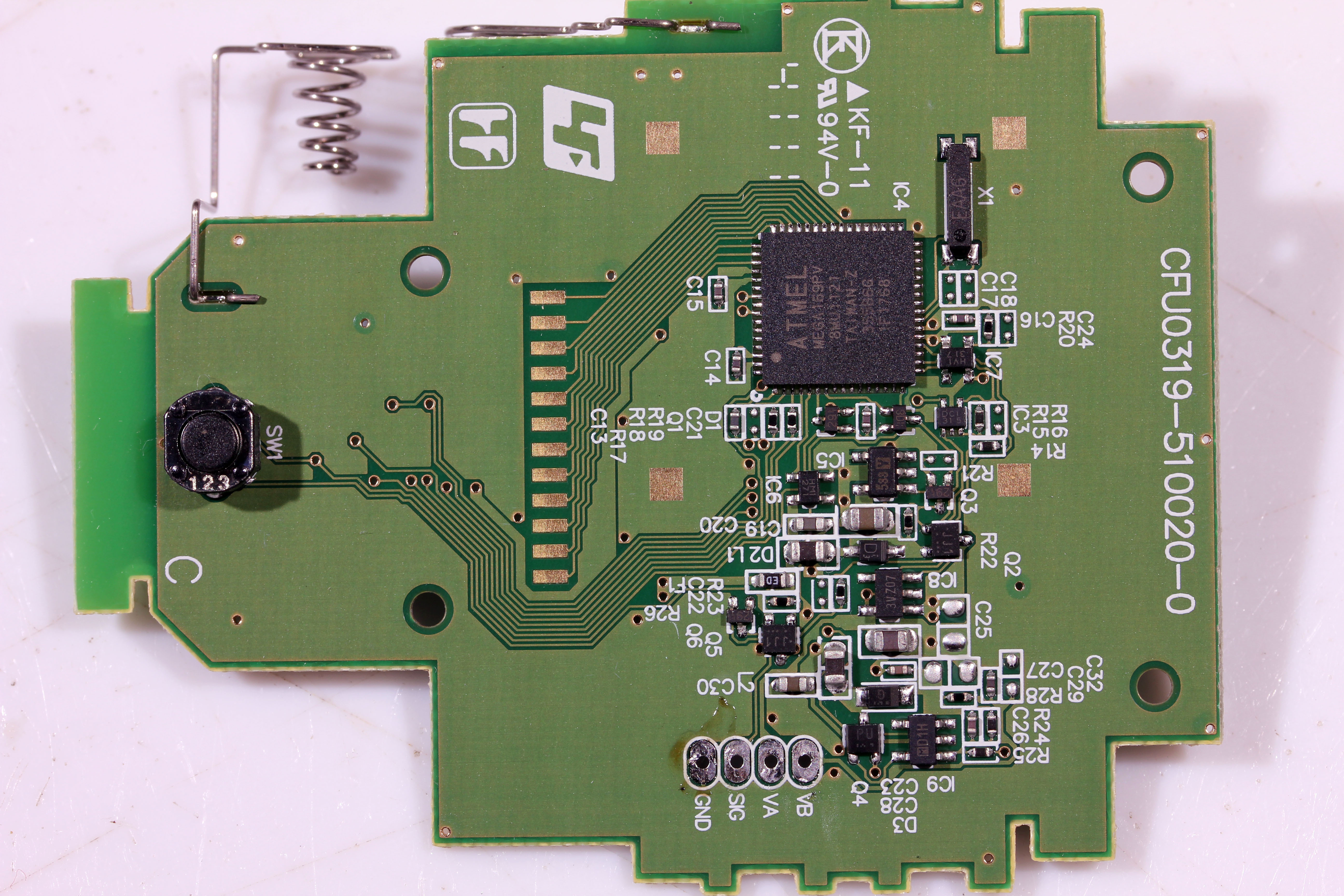 センサーは10mm角のやつが3つ入っていた。 マイコンはATmega169で、電池BOXの