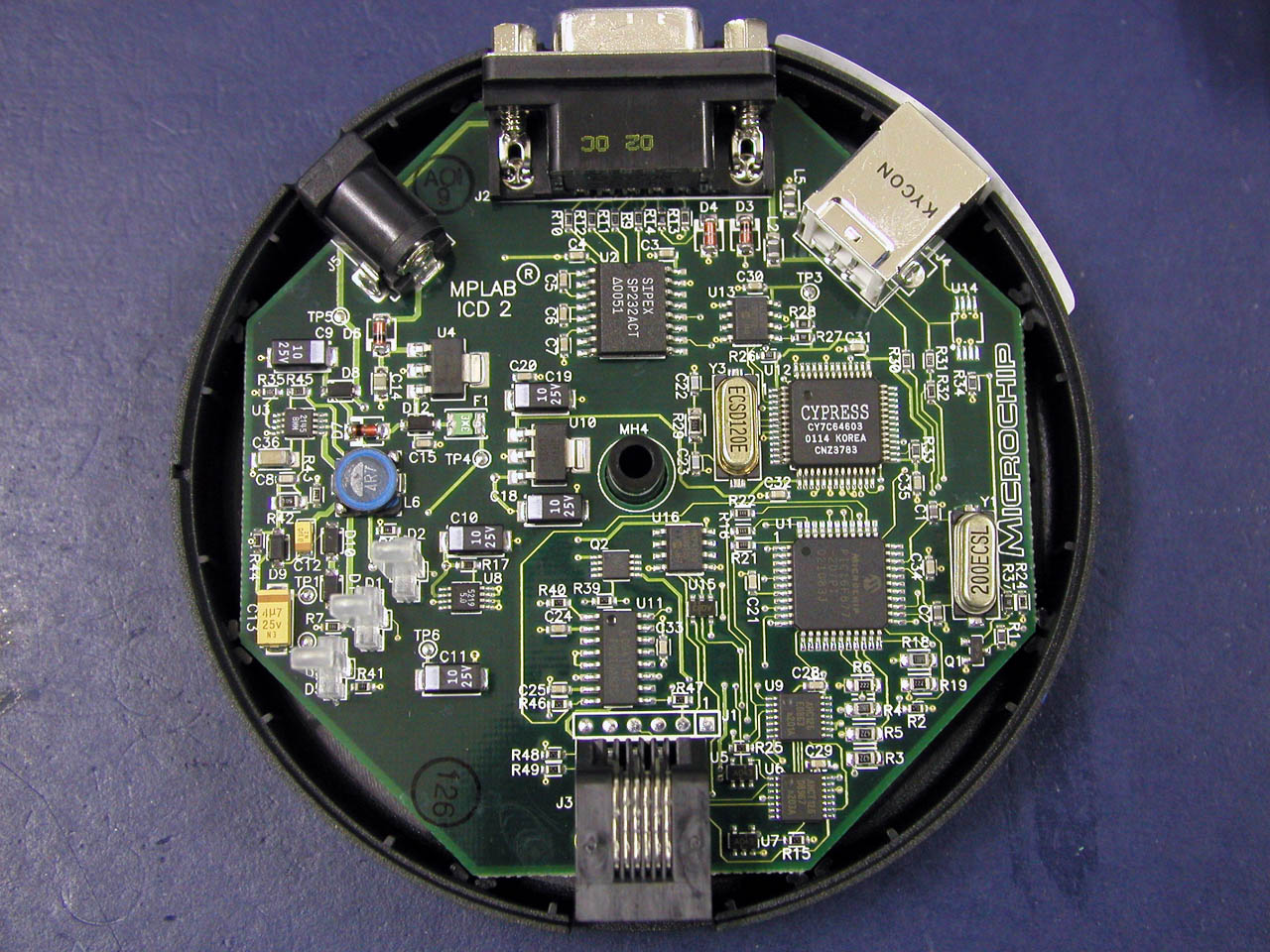 MPLAB IDEと連携使用では、ターゲットPICのシリーズを変更する毎にICD2上のPIC16F877のファームウェアがターゲット専用のファームウェアに書き換わるようになっている。 下手に独自の互換ファームなどを作成したりして、この書き換えシステムが成立しないようなシステムであっては使いにくくなるので、回路構成をできるだけ互換とし、純正の取り扱いそのままつかえるようにしたい。