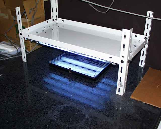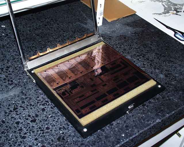 (※追記)露光の作業をするのに、完璧な暗室にはそれほどこだわる必要はありません。 昼間でも、部屋のカーテンを閉めるなどして薄暗くしておけば問題ありません。 蛍光灯を近距離で露光しても15分以上感光時間がかかるのです。