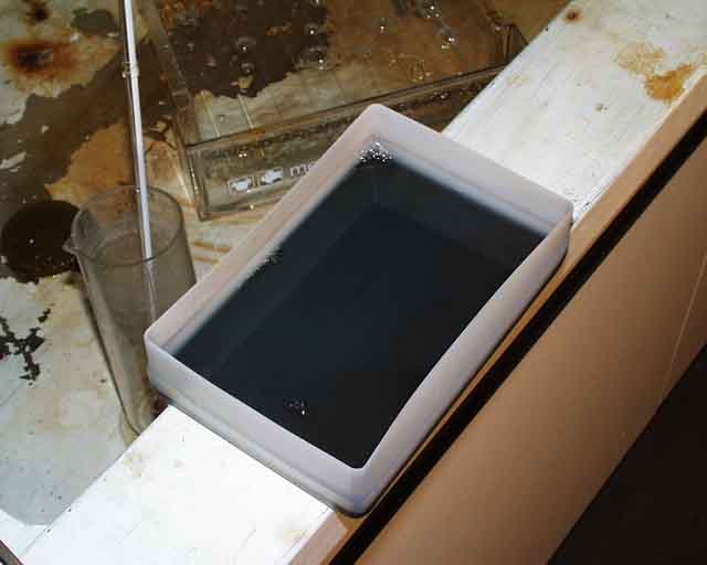 現像液は、酢酸を入れると溶解した感光物質が凝固して、固形物質は燃えるゴミ、液体は充分希釈して下水に流せるそうです。