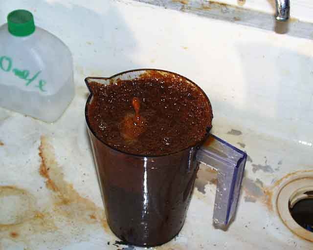(注)この処理は数日かかるので、「たらい」にブチあけて、屋外で1週間ほどほったらかしにして乾燥したところでビニールに集めて捨てるのがよろしい(のでは?)。
