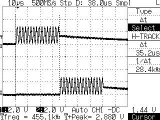 ![]() 上:マトリクス信号、下:ペンのトリガー |