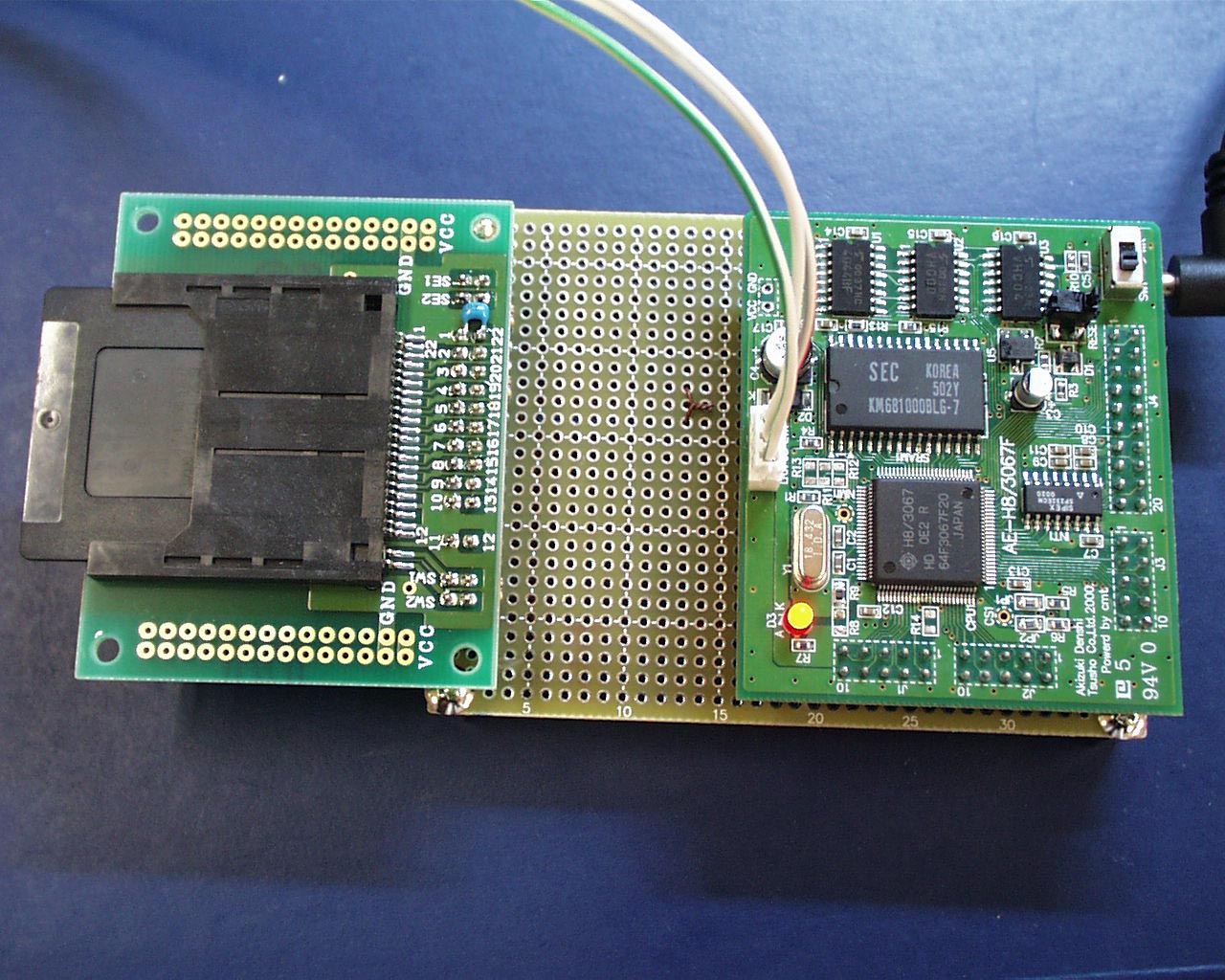 2001/11/29 AKI-H8/3067ボードになんちゃってインターフェースをつけて とりあえずスマメのIDを読むことに成功。 2001/12/02 液晶ディスプレイ装着、制御関数作成